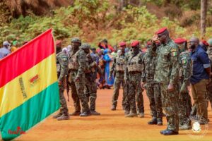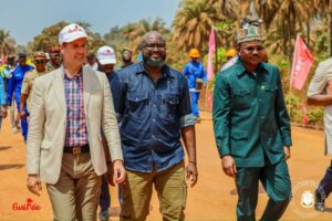 Résolu et engagé dans la dynamique de réaliser le plus grand projet de minerai de fer du monde, le Président de la République, le Général de Corps d’Armée Mamadi Doumbouya, a présidé la cérémonie de pose de la première poutre du chemin de fer de la compagnie du Trans-Guinéen à Forécariah dans la commune rurale de Kamalayah , située dans la sous-préfecture de Moussaya, Préfecture de Forecariah, ce mardi 12 mars 2024, en compagnie des membres du CNRD, des hauts cadres et d’importantes personnalités de la Présidence de la République, du Conseil National de la Transition, de la Compagnie Transguinenne, des représentations diplomatiques, de l’Administration déconcentrée, ainsi que des populations à la base.