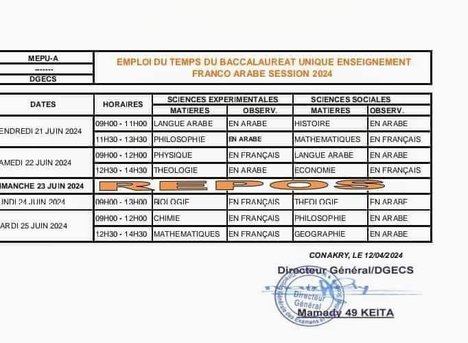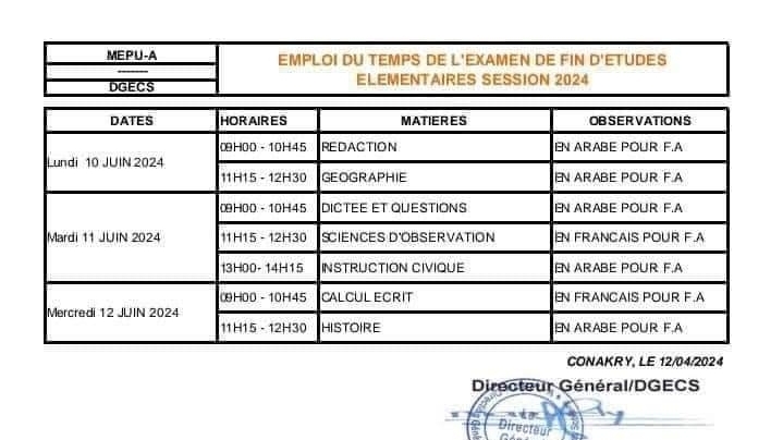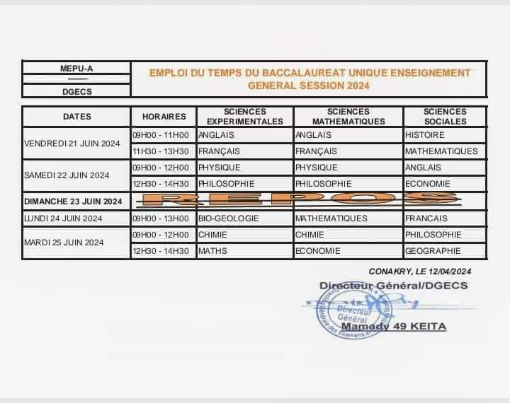 Le Ministère de l’Education Pré-universitaire et de l’Alphabétisation à dévoilé ce lundi Le calendrier du déroulement des différents examens nationaux.