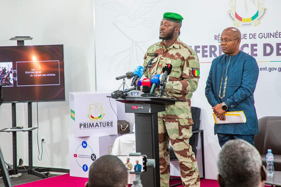 Gouvernement guinéen, représenté par le Général de Brigade Amara Camara, Ousmane Gaoual Diallo et Moussa Moise Sylla, respectivement Secrétaire Général à la Présidence de la République, Porte-parole du Gouvernement, et Ministre de la Culture, du Tourisme et de l’Artisanat, a tenu une conférence de presse ce jeudi.