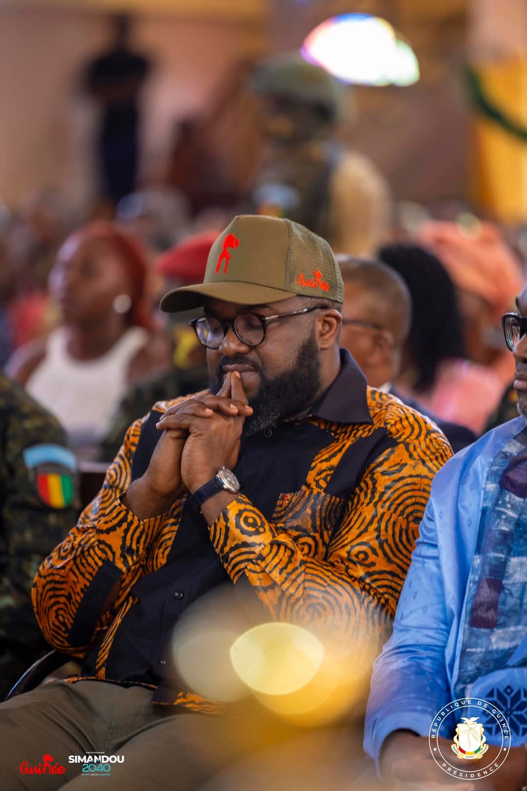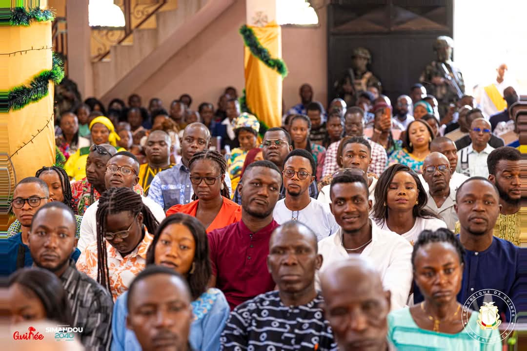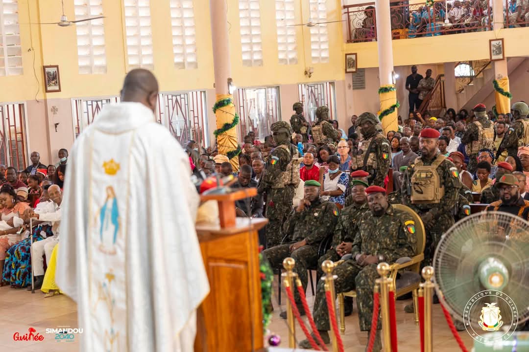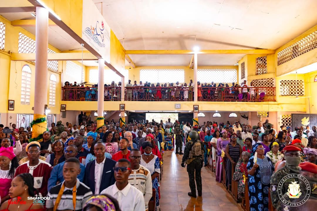 La cérémonie s’est tenue à la Paroisse AnneMarie Javouhey de Nongo, où il était accompagné de plusieurs personnalités, dont le Ministre Secrétaire Général de la Présidence, le Général Amara CAMARA, le Ministre Directeur de Cabinet de la Présidence, Djiba DIAKITÉ, le Ministre de l’Agriculture et de l’Élevage, Félix LAMAH, ainsi que le Directeur de Cabinet du Ministère de la Défense Nationale, Général David HABA.