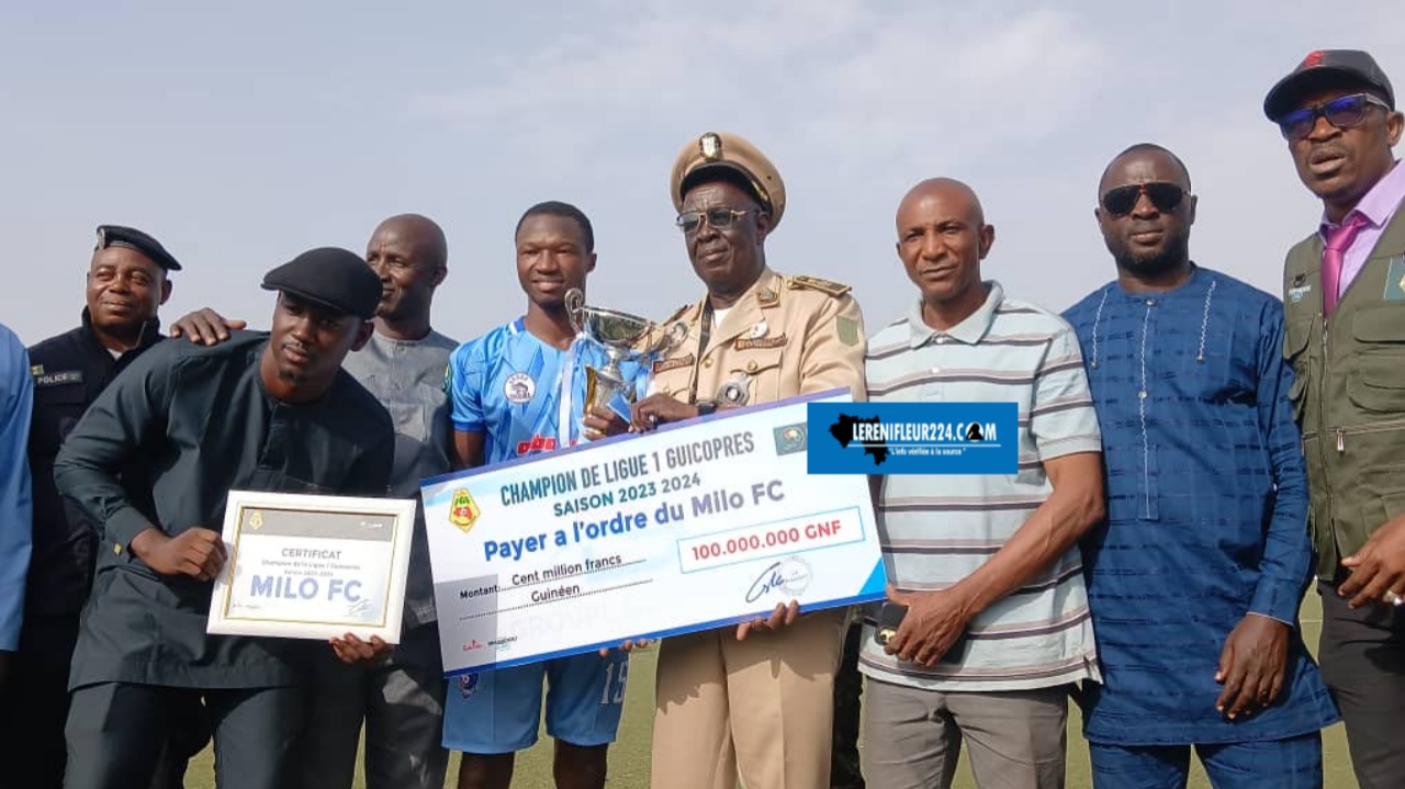 Le Stade M’Balou Madi Diakité de Glao a vibré ce jeudi 9 janvier 2025, au rythme de la consécration. Quelques mois après leur sacre, les Bleus et Blancs du Milo FC ont enfin reçu le trophée de champion de la saison sportive 2023-2024 de la Ligue 1 guinéenne.