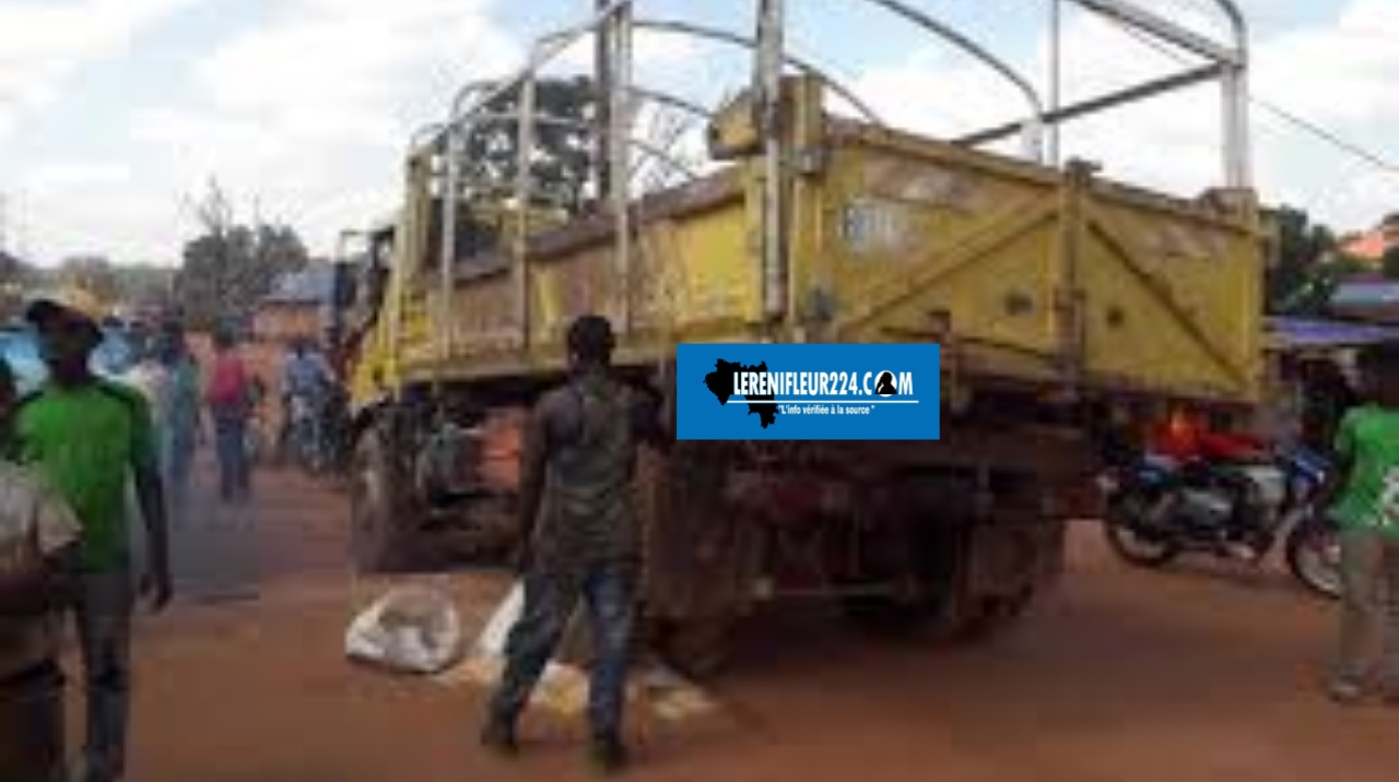 Selon les informations recueillies par un reporter du site d’information lerenifleur224.com basé sur place, un camion benne à six roues a violemment percuté un conducteur de taxi-moto qui était garé sur le bord de la route, en attente du règlement de son client.