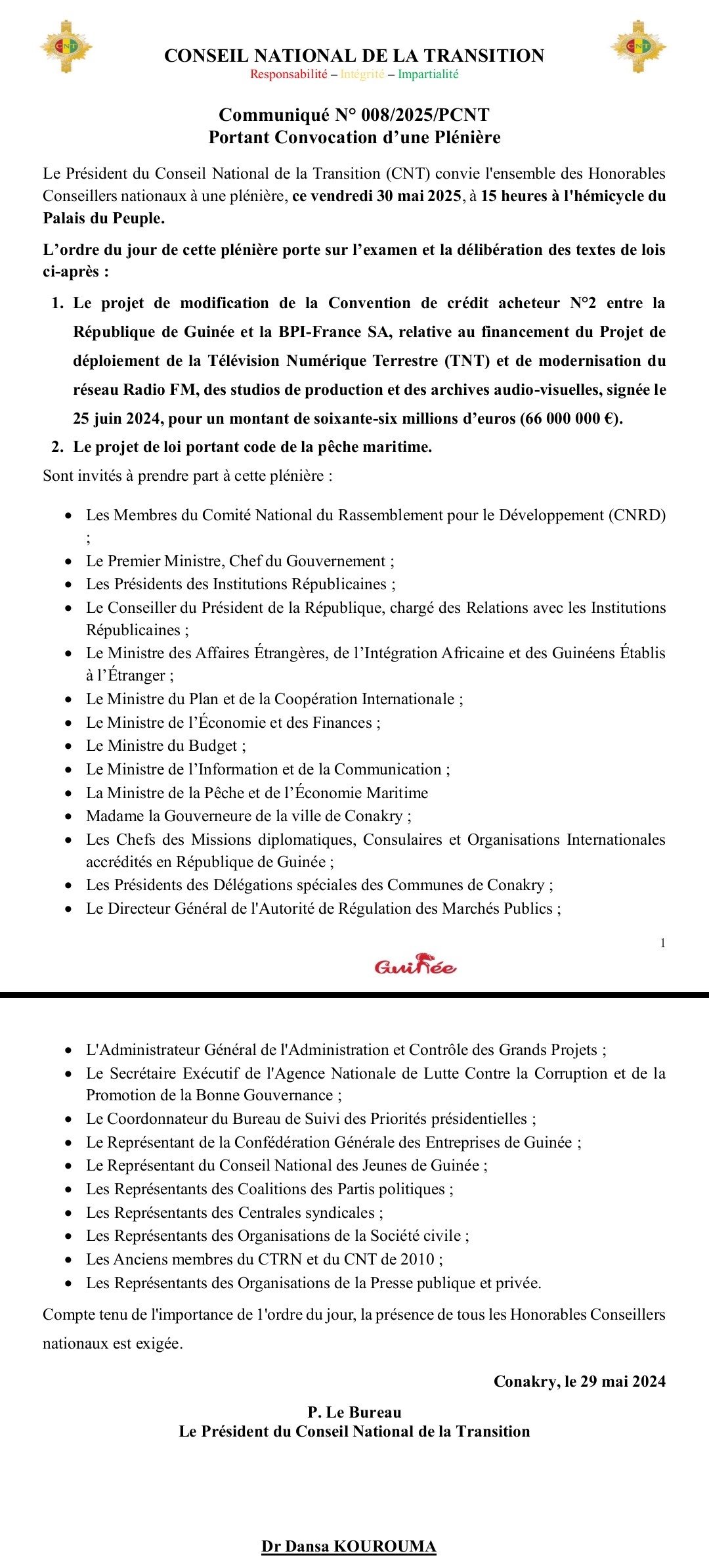 CNT : Dr Dansa Kourouma convie les conseillers nationaux ce vendredi à une plénière décisive sur l’avenir numérique et maritime de la Guinée