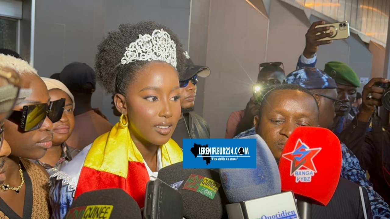 C’est dans une ambiance festive, marquée par les chants, les cris de joie et les applaudissements, qu’une foule de fans vêtus de t-shirts à son effigie l’a reçue. À sa descente d’avion, la nouvelle reine a exprimé sa profonde gratitude envers le peuple guinéen