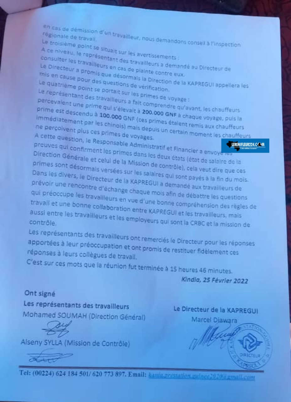 Toutes nos tentatives pour rentrer en contact avec un responsable de l’entreprise mise en cause ont été vaine. Ce dossier met en lumière les lacunes dans le suivi et la régulation des entreprises sous-traitantes dans les projets d’infrastructures publiques. Alors que les chantiers se multiplient dans le pays, la protection des droits des travailleurs demeure un enjeu crucial. Le cas des ouvriers de KAPRESGUI appelle une réponse rapide des autorités, au nom de la justice sociale et du respect des engagements contractuels.