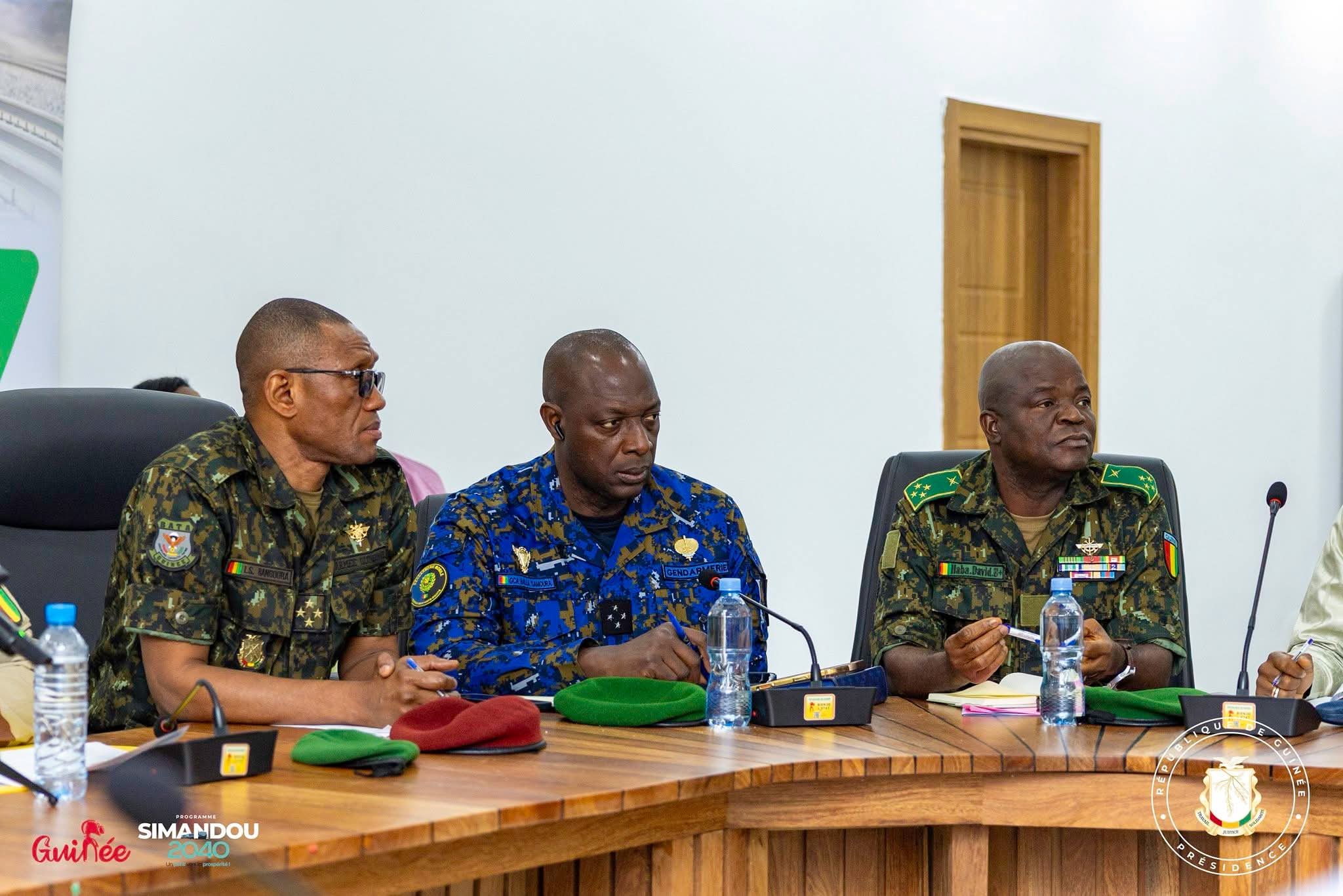 La séance était présidée par de hautes autorités de la Présidence, notamment le Ministre Secrétaire Général de la Présidence le Général Amara CAMARA et le Ministre Directeur de Cabinet de la Présidence M.Djiba DIAKITÉ, en présence de représentants de la haute hiérarchie militaire, dont le Chef d’État-Major Général des Armées le Général Ibrahima Sory BANGOURA et le Haut Commandant de la Gendarmerie nationale, Directeur de la Justice militaire le Général Balla SAMOURA.